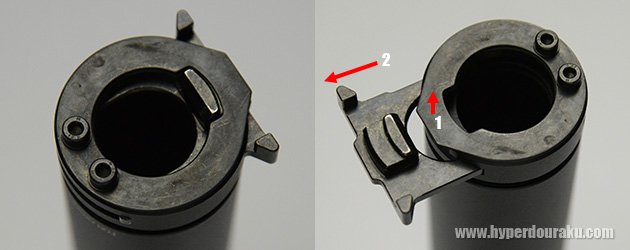 A2ハイダーのレンチ用切り欠き部分にロックレバーがフィットして回転を防いでいる。