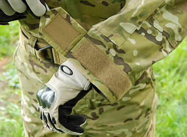 二の腕部にMULTICAMの制式ライセンスの証拠であるタブがある。
