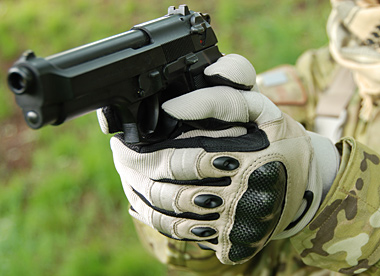 カーボン製のナックルガードが装備されており、ゲームで被弾するととても痛いナックル部分をガードできる。グリップ感も良く効いており、ベンチレーション効果もあいまって非常に快適だ。