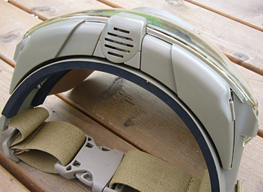 フェイスガードが大振りなので自分流にアレンジしてカッティングしたらかなり自由に顔を動かせるようになったし、わずかだが軽量化もできた。