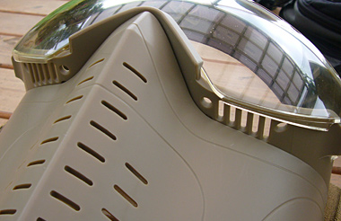 2008年9月に東京マルイより発売となったファンベンチレーション付フルフェイスゴーグル「PRO GOGGLE」。実際にゲームで何度か使用してみたので、その結果もレビューする。