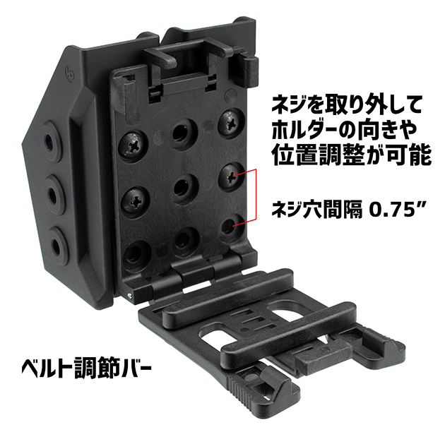 ベルトクリップをオープンするとホルダー固定用のネジ留めが見えますので、ネジを外せばホルダーを取り外すことができます。