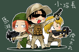 HD小隊 (えいちでぃーしょうたい) 左から『馬渕、小隊長、虎太丸(こたまる)』 楽しく遊ぶ事をモットーにし過ぎて全く勝てないサバゲチーム。 本奈入隊でライバルチームに勝ち越せるか…!? 装備は各々自由。BDUだけはピクセルデザートに統一。 |