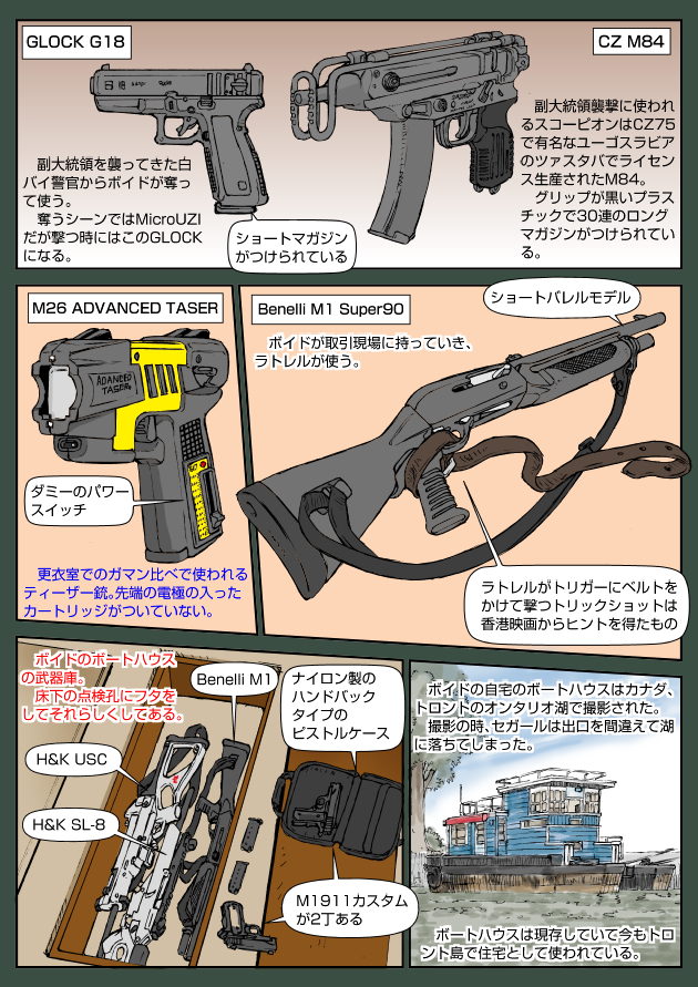 名作映画に登場する銃器やアイテムをマニアックにイラストで紹介。