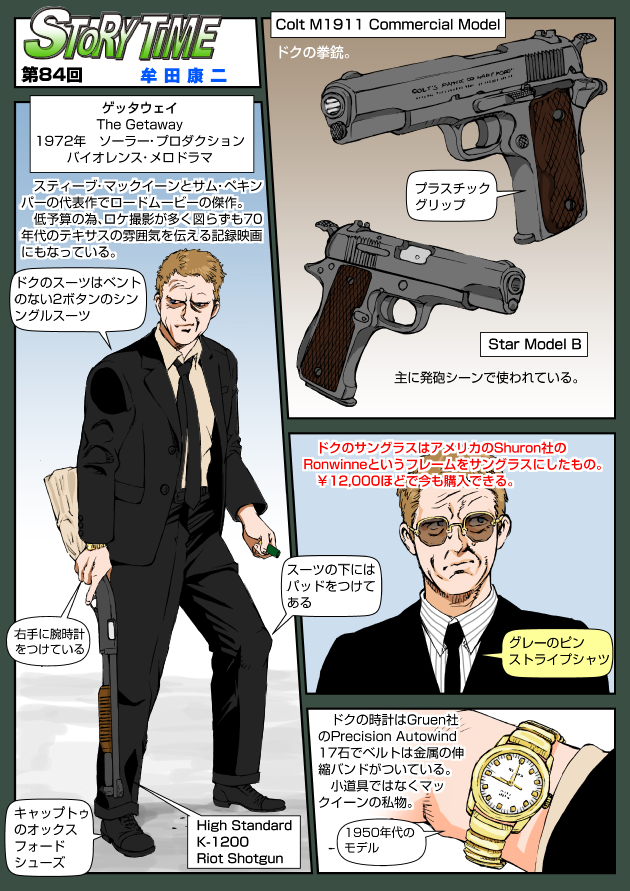 第84回は1972年公開の『ゲッタウェイ』。スティーブ・マックイーンとサム・ペキンパーの代表作でロードムービーの傑作。低予算のため、ロケ撮影が多く図らずも70年代のテキサスの雰囲気を伝える記録映画にもなっている。