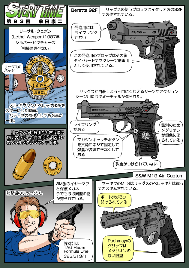 第93回は1987年公開、メル・ギブソン主演の『リーサル・ウェポン』。メル・ギブソンとベレッタ92Fをスターにした映画。バディ物の傑作としても名高い一作。