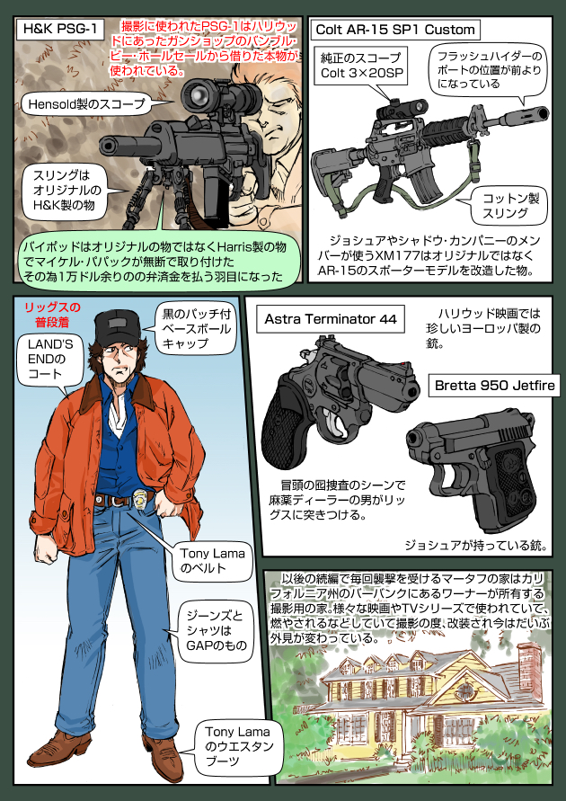 名作映画に登場する銃器やアイテムをマニアックにイラストで紹介。