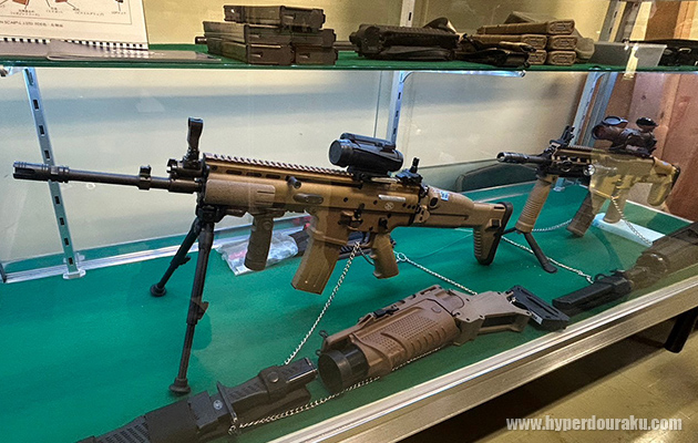 ベルギーFNのSCAR-L。FN Mk13グレネードランチャーも展示。