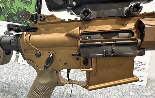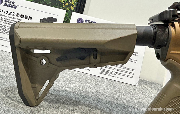 FDE(RAL8000?)カラーのXT112 歩槍。ARをベースとして台湾が独自開発した5.56mm×45口径のアサルトライフルだ。これまで台湾軍はXT97など先進的な小銃を開発していたが、こちらは実質的な現用T91歩槍の後継モデルと言えるだろう。