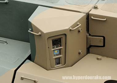 右の写真、砲身根元の照準用レーザー発信器、さらにその後が照準潜望鏡。