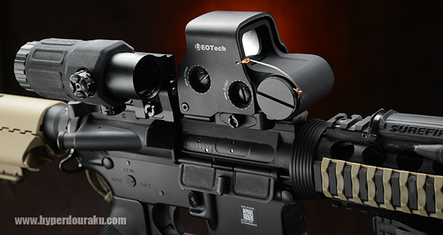 タンデムでドットサイトとMagnifireを搭載するスタイルは米軍のM4カービンでもよく見かける。