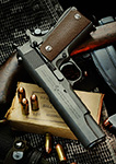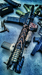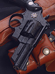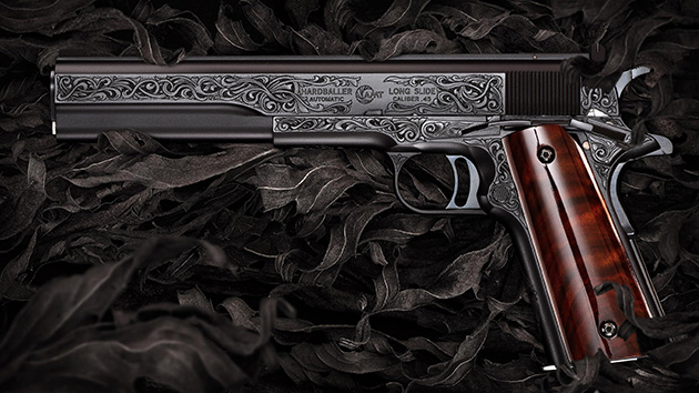 構図が安定していて色合いや質感、さらに銃に彫り込まれたエングレーブとそれを象徴する背景など、細部までとても神経の行き届いた作品ですね。