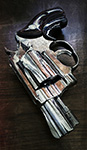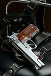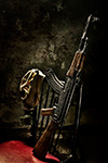 椅子でしょうか?……の上にショルダーホルスターとの組み合わせ。ガンフォトの王道ともいうべきスタイルの作品です。立体的な構成が見事! フレイムの光りすぎを押さえたライティングなど、配慮が素晴らしい。写真を仕事になさっていらっしゃるか、かなりの経験をお持ちの方なのでしょうか? お話しを伺いたいです。
