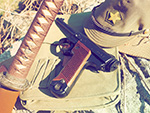 ・ガンフォト王道のスタイルですね。オートマグをケースに収めたままでなく、取り出す事で動きが演出されてます。ケース自体を斜めにしてみてください。新たに迫力が増してきます。(トモ長谷川)