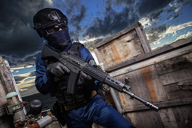 モデルのガンの構え方、脚の運び方や指先まで、神経が配られていると写真に迫力が持たせられます。