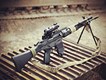 光と影のコントラストがいい感じです。看板の赤が単調な中にアクセントになっていますが、ミリタリーっぽいともっと良かったです。(戸井) 錆びたトタンの背景とAKの使用感がマッチしていて好きな作品です。さりげないですがフレーミングにも気を使われてますね。(YAS)