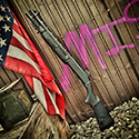 ディフューザー越しの光をコントロールして、グラデーション豊かにライティングされてます。ガンの浮かせ具合、弾箱の差し込み方、ホルスターの絡み具合など、かなり手慣れてらっしゃいます。ガンの角度がもう少し寝ていたら.....より安定感が増したかもしれません。海外のガン雑誌風のディザインも見事です!(Tomo) 銃の配置、小物使い方、光の当て方など申し分ありません。(戸井) もはやそのまま米銃器雑誌の表紙を飾れるクオリティです。(YAS)