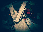 アタッシュケースの上に置かれたガンの配置、カートリッジやクリスタルスカルなどの小物の配置が上手くまとまっています。(YAS) 黒とシルバーの銃をうまく撮るのは実は難しいのですが、銃の輪郭が綺麗に出ています。(戸井)