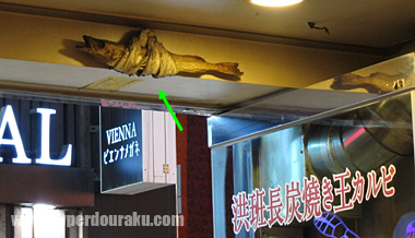 お店の入り口上に本物の鱈の飾り物があった。燻製かな?