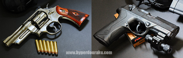 つづいて.357マグナム弾仕様のゴールドデザートイーグル、S&W 1911、ベレッタM92FS Inoxを撃つ。