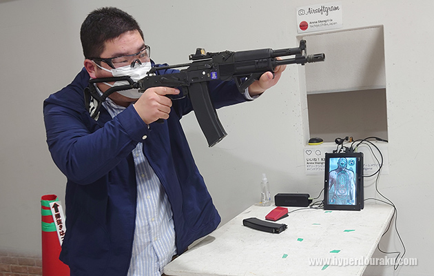 ファーストラウンドではボディセンターを堅実に狙っている。続くハンドガンのセカンドラウンドではやや着弾が散ってしまったのが惜しいところ。