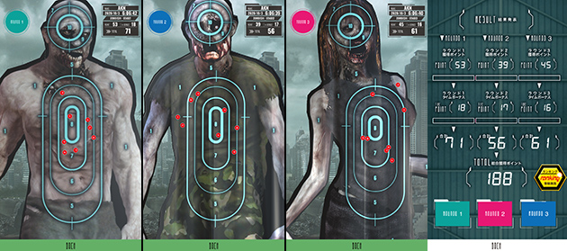 ゾンビターゲットをいかに正確に素早く撃つかによってスコアが決まる!