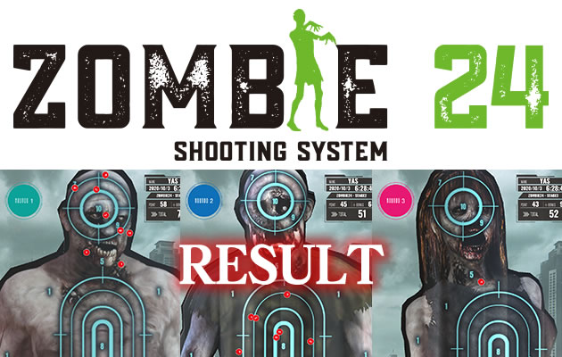 ゾンビ24という電子ターゲットを利用したエアガン用シューティングゲームの結果ページです。