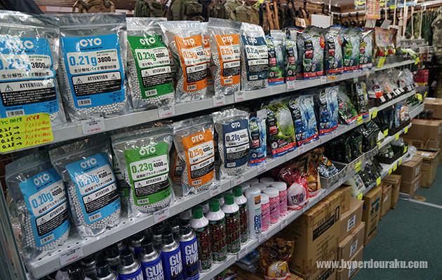 BB弾はG&G、CYC、マルイ、エクセル、BLSと多くのブランドを取りそろえている。