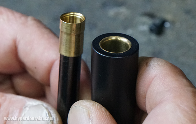 このようにインナーバレル、インナーバレル用スリーブ、アウターバレル用スリーブ、アウターバレルと4パーツを組み合わせ、さらにそれぞれがステップ、テーパー、ベルマウス形状加工されている。