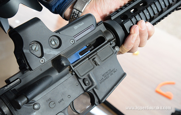 これをARのマガジンにシングルカラムでロードしてARで撃つという、とんでもない展開。詳しくはページ下部の動画で。