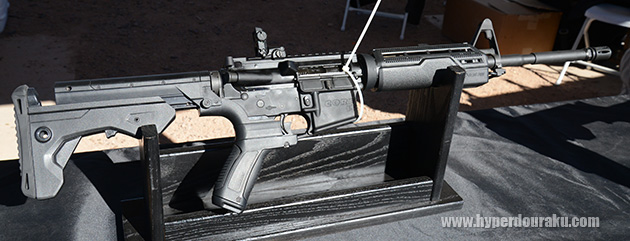 SLIDE FIRE ストック。フルオート規制のある州で大人気、かどうか知らないけど、ストック伸長を調節可能な新デザインが展示されていた。