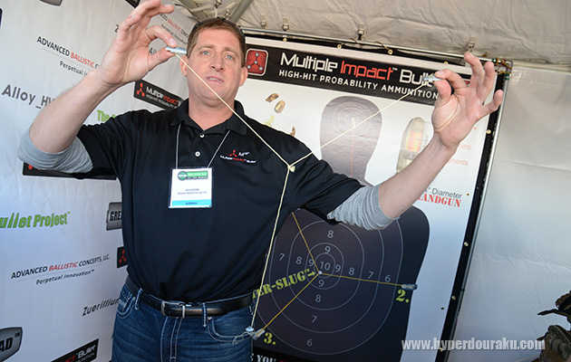 Multiple Impact Bulletという特殊な弾薬で、撃つと弾頭が三つに分離して飛び、その弾頭はケブラー繊維の高強度な紐で結ばれており、より大きな範囲でダメージを与えるという仕組みの弾。