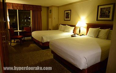 今回ラスベガスで滞在したホテルはHarrah'sホテル。ベネチアンの隣のホテルでショットショー会場のSansExpoまで歩いて行けるのでとても便利だった。ホテル東側にはモノレールの駅もあり、少しの遠出ならタクシーを使わずに行ける。