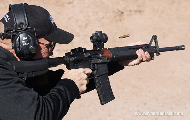 トリガーを引いたまま、その赤いレティクルにターゲットを合わせるとシアが自動的に落ちて弾が発射される。