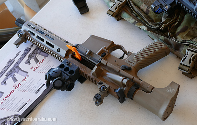また、新型のSP5Kが撃てた。形状はMP5クルツでストックレス、セミオートオンリーのピストル。