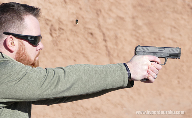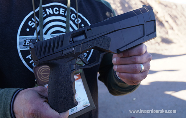 H&Kではストライカー式のポリマーオート、VP9 TACTICALのサプレッサー付を撃てた。
