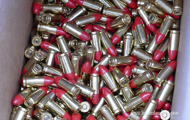 ベレッタのブースで見かけた弾頭にピンクの樹脂コートされた9mm弾。