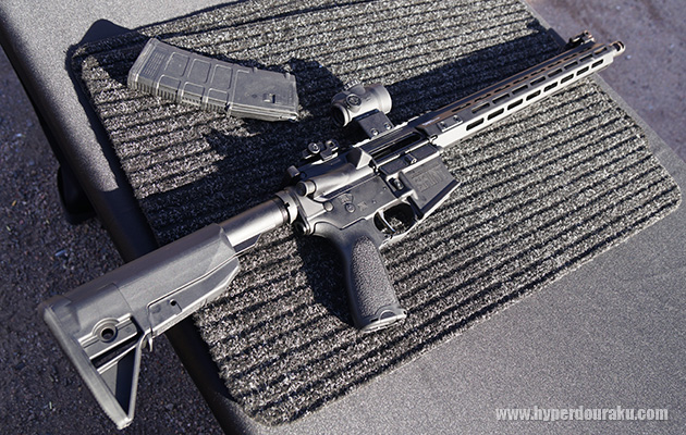 おなじくSpringfield ArmoryのAR15、SAINT VICTOR。M-LOCKハンドガードレイルやストレートトリガーを装備。軽量化のためハンドガードのトップにはピカティニーレールがない。