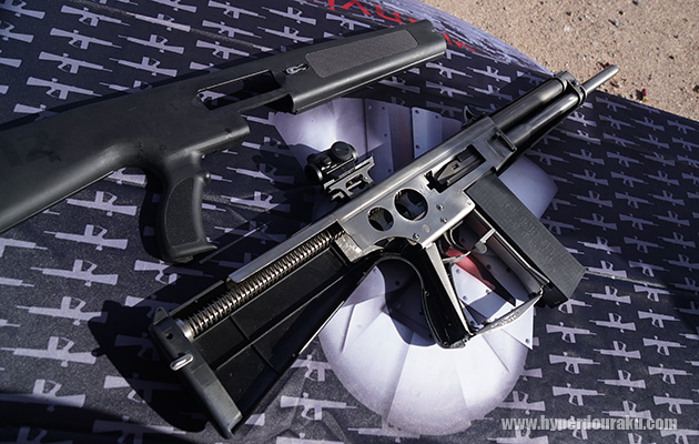 MAGPULではCz EVO3用のカスタムパーツを装着したモデルが撃てた。グリップやフォアグリップ、マガジンなどがMAGPUL製。