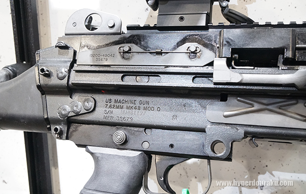 MK48 MOD1。口径7.62mmx51。レイルハンドガードではなく、最新仕様では従来のヒートシンクに戻っている。