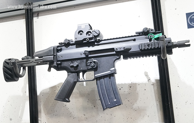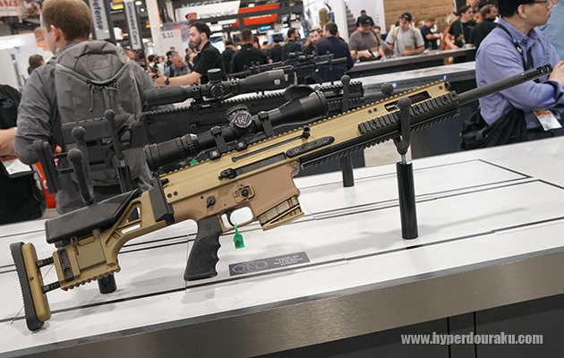 HOLOSUNのマイクロドットサイトが搭載されていた。HOLOSUNは多くのブースで搭載されていた。
