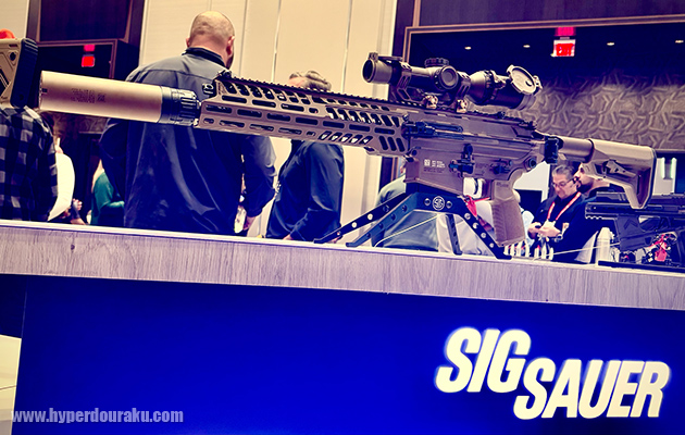前回は開催直前に出展をキャンセルし様々な憶測を呼んだSIG SAUERだったが、今回はややブースの規模を縮小しながらも「SIG SAUER DEFENCE」名義でSHOTSHOWに復活! 米軍次期制式カービン「M-7」ことMCX SPEARをはじめとする注目の軍用銃が一挙展示された。このM−7もサプレッサー標準装備の状態で米軍に配備される事になっている。