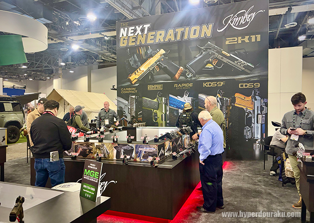 かつてはシングルスタック.45口径のM1911クローンしか製造しない頑固一徹なメイカー、というイメージが強かったKIMBERだが、久しぶりにショットショーのブースを訪れてみれば、モジュラーフレームのハイキャップ「2K11シリーズ」を前面に押し出す展開で、カラーリングもじつに鮮やか! まさしく隔世の感があった。