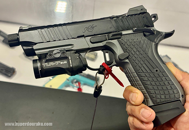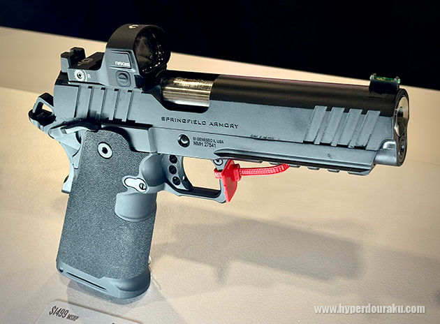 数年前から展開中の2011系モジュラーフレームハイキャパがPRODIGY(プロディジー)シリーズだ。その基幹モデルとなるのがこの5.1インチフルサイズのモデル。ダットサイトが付き、スペアマガジンが3本付いてMRSP(メイカー推奨販売価格)が1,499ドルという、他社同クラス商品の60%程度という破格のロープライスがウケにウケ、発売から約1年を経過した今も品薄状態が続いている。