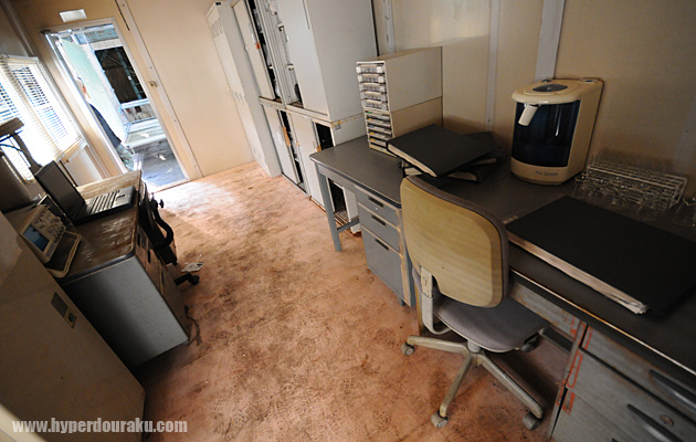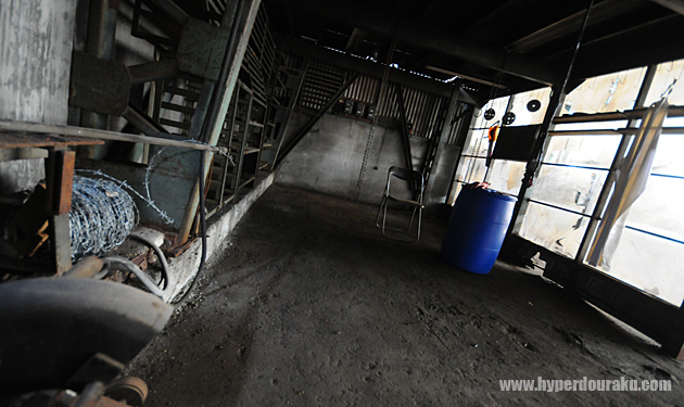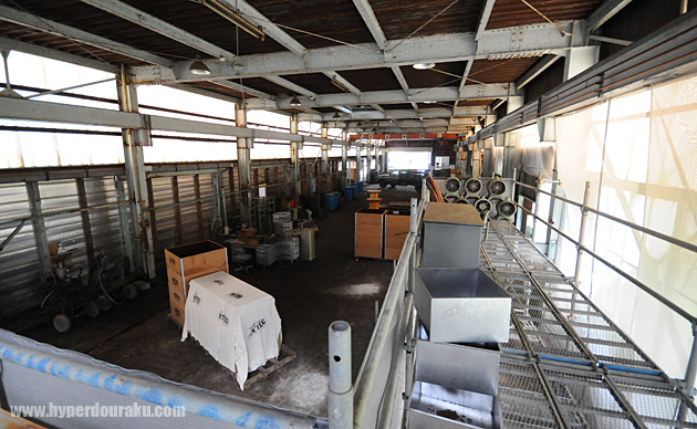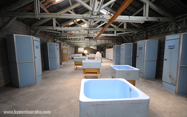 Aフィールド北側倉庫を手前から。トイレとバスタブが並ぶ。