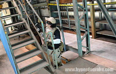 倉庫側からは側面の階段を上って各階へ突入できる。