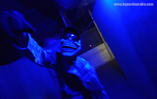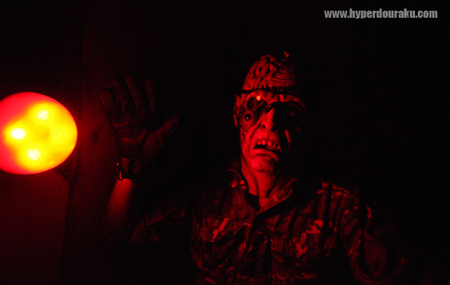 って、うわわーっ!! でた~!! ゾンビ〜!! 「ヴグぅぅぅ〜、ぐぉあぁぁぁぁ...」唸るゾンビ。ゾンビ役のスタッフも迫真の演技。