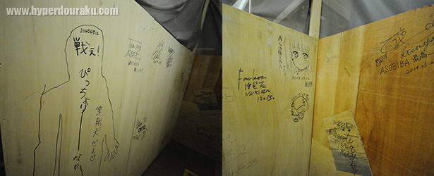 壁のサイン。戦え! ぴっちょりーなや乙夜さんも来場していた。