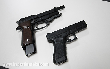 レンタルガンは東京マルイの電動ハンドガン、93Rとグロック18C。
