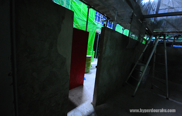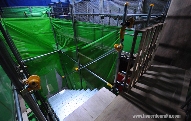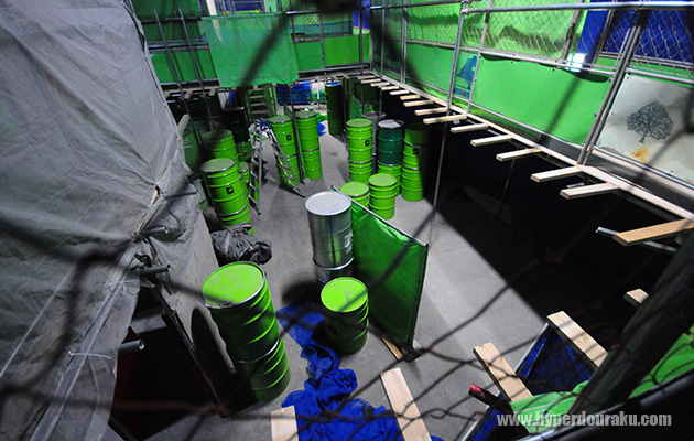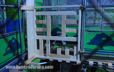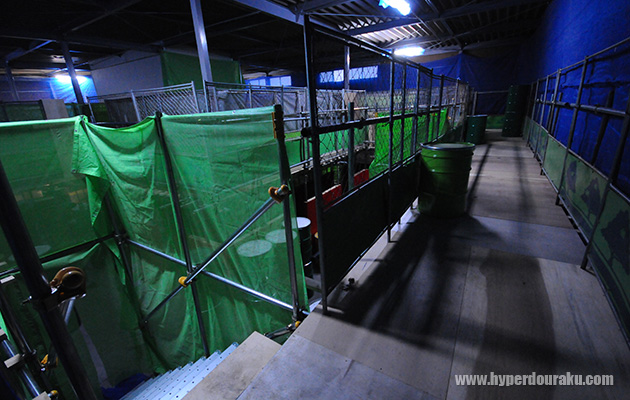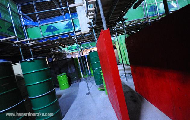 単管で組まれたフィールド2F部分から見たフィールド1F部分。激しい戦闘が予想される。
